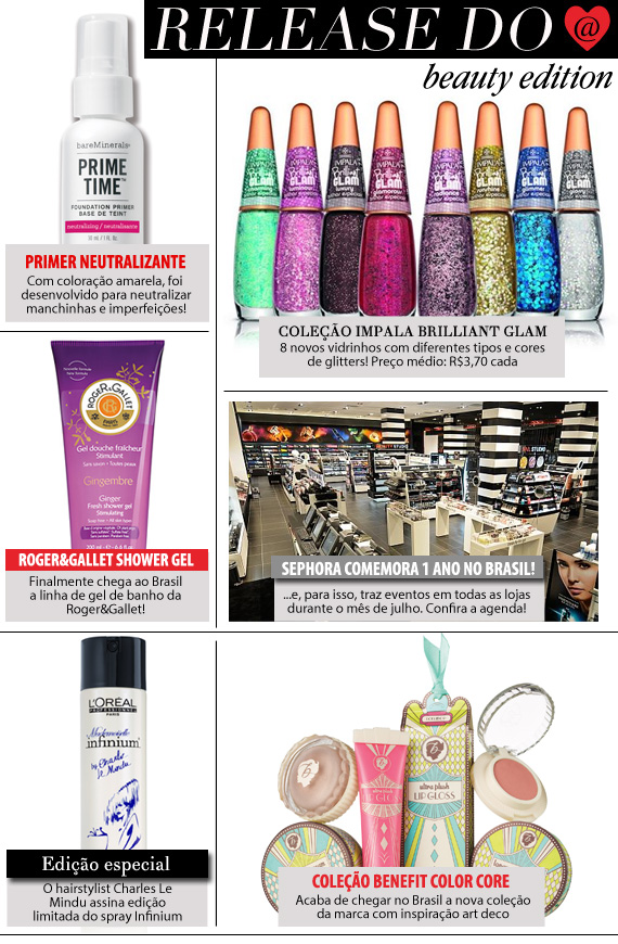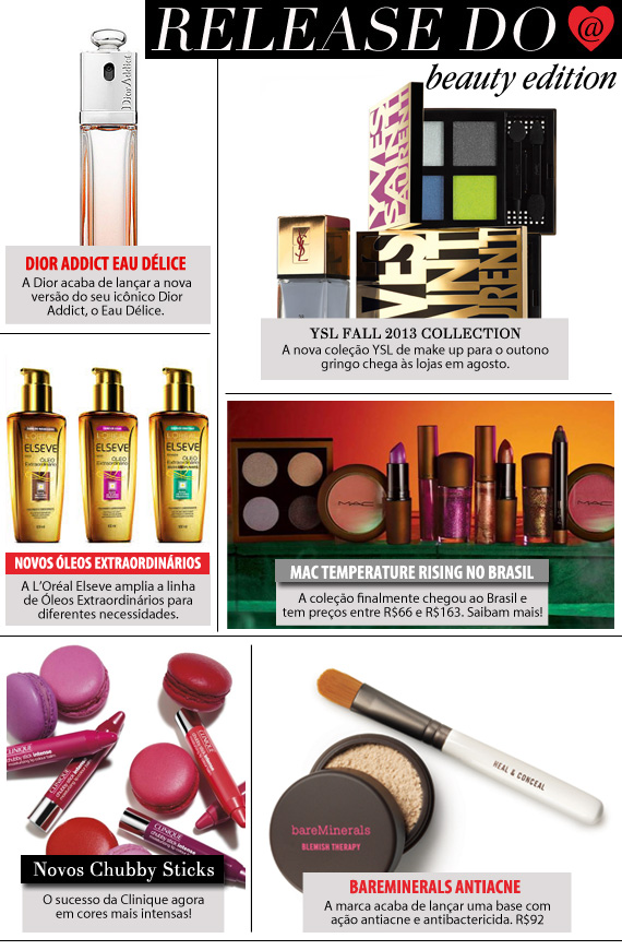 Corretivo Tracta R$28, BB Cream Maybelline R$29,90, Blush Dream Touch Maybelline R$35,50, Rímel Colossal R$22,35, Pó Pure MakeUp Maybelline R$29,90